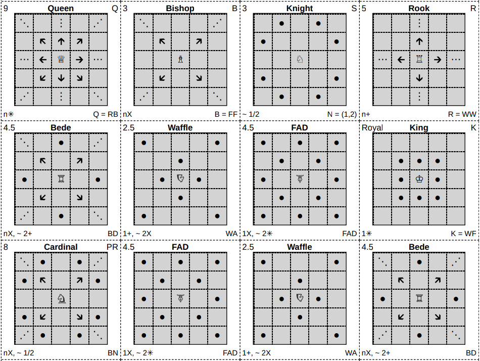 Chess piece cards with movement descriptions.